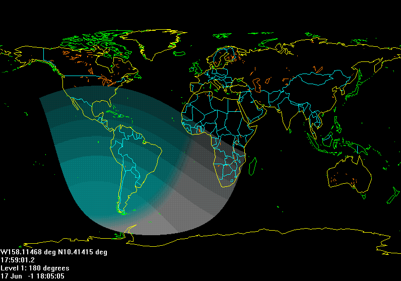 The highlighted areas of the map show where the conjuction is visible. The gray area is the only region where the
