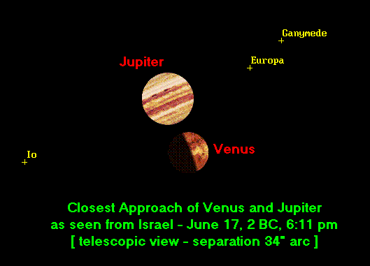 The image below shows the two planets at conjunction as seen from 30 N (telescopic image).